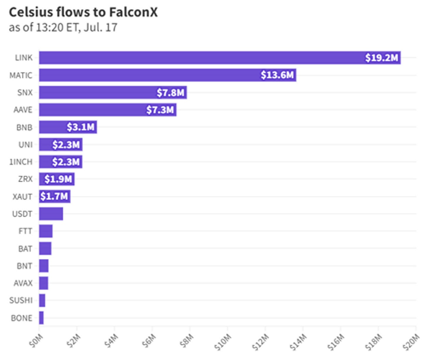 We know that Celsius will be converting Altcoins into BTC and ETH sometime in the future. It seems like that time might have come. Twitter users have been monitoring Celsius addresses on Dune and Blockworks and recently reported that Celsius conducted on-chain transactions with some of its altcoins last week. The tokens were transferred to wallets associated with FalconX and OKX exchanges. Below are the details of the on-chain transactions to FalconX: