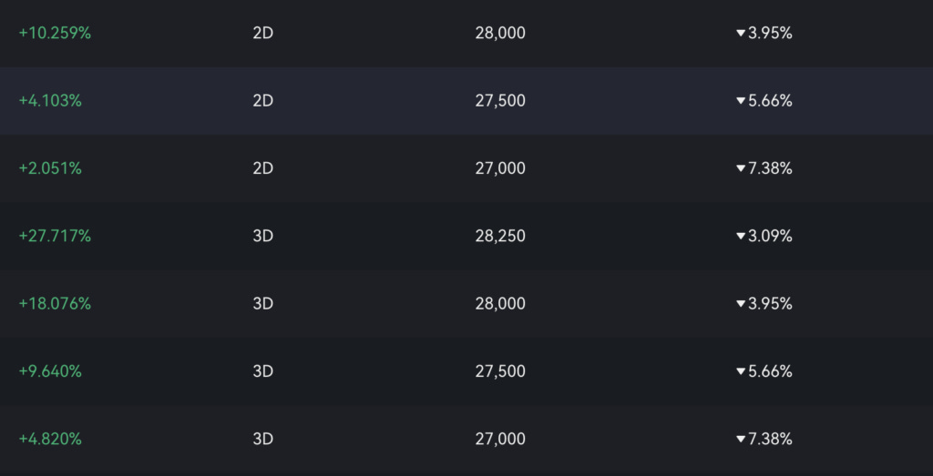 We can use structured products to buy-the-dip with high yields during this market drop, while waiting for our entry price. Placing orders with a $28,000 strike and 2-day expiry offer a 10% annualized return. Avoiding 3-day expiry due to the upcoming FOMC meeting and potential volatility. This strategy aims to capitalize on the dip.