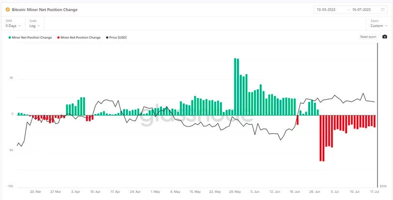 Miners selling off Bitcoin in the past month compared to strong accumulation in the month prior.