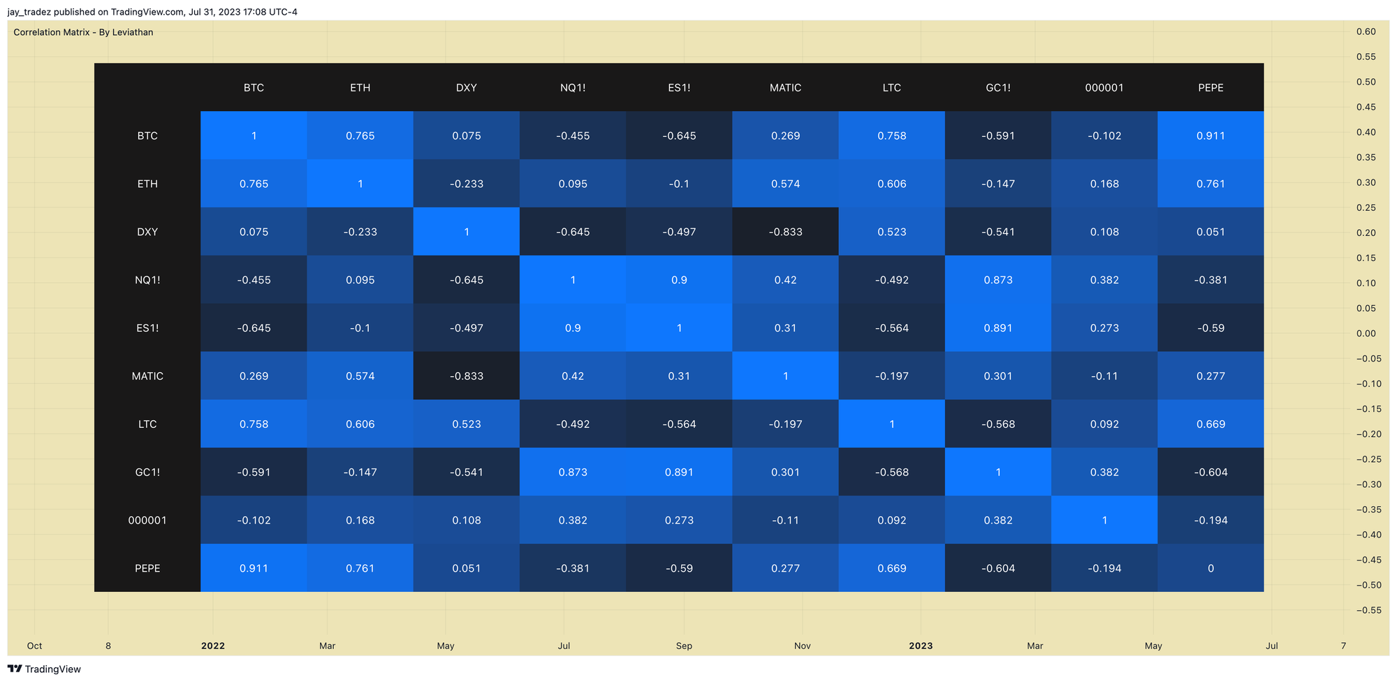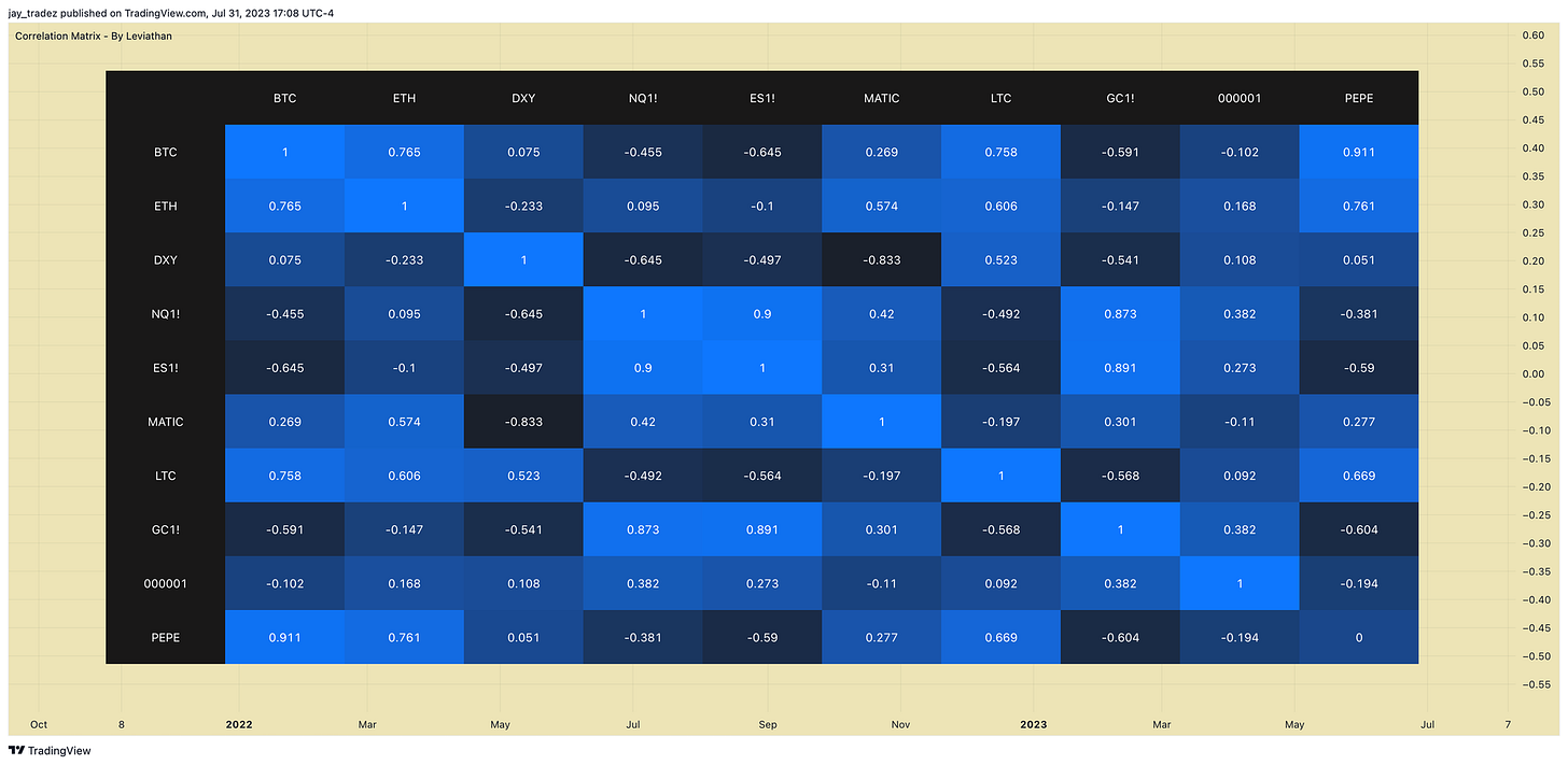 BTC has been gradually moving to the right side of the chart, seemingly unaffected by any macro headlines or movements in the equities market. The correlations between BTC and key price drivers in the past two years, like DXY, Gold, and Nasdaq, have decreased and turned negative recently. Below is a comprehensive comparison with different assets: