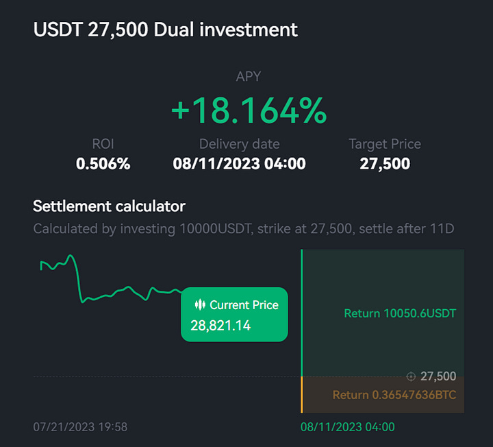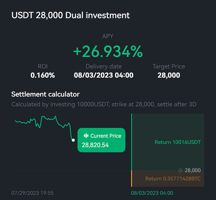 With a sudden drop in the markets, we recommend taking advantage of this opportunity as the downside volatility has just increased. This means that there will be higher returns at more critical levels of support. As we talked about above, we recommend using the Buy-The-Dip strategy with structured products, and with this increase in volatility and returns, now is the perfect time. We recommend 3 day, $28,000 strike with an annualized return of 27%. If you want to lock in this high return rate, we recommend 11 day, $27,500 strike with an annualized return of 18%.